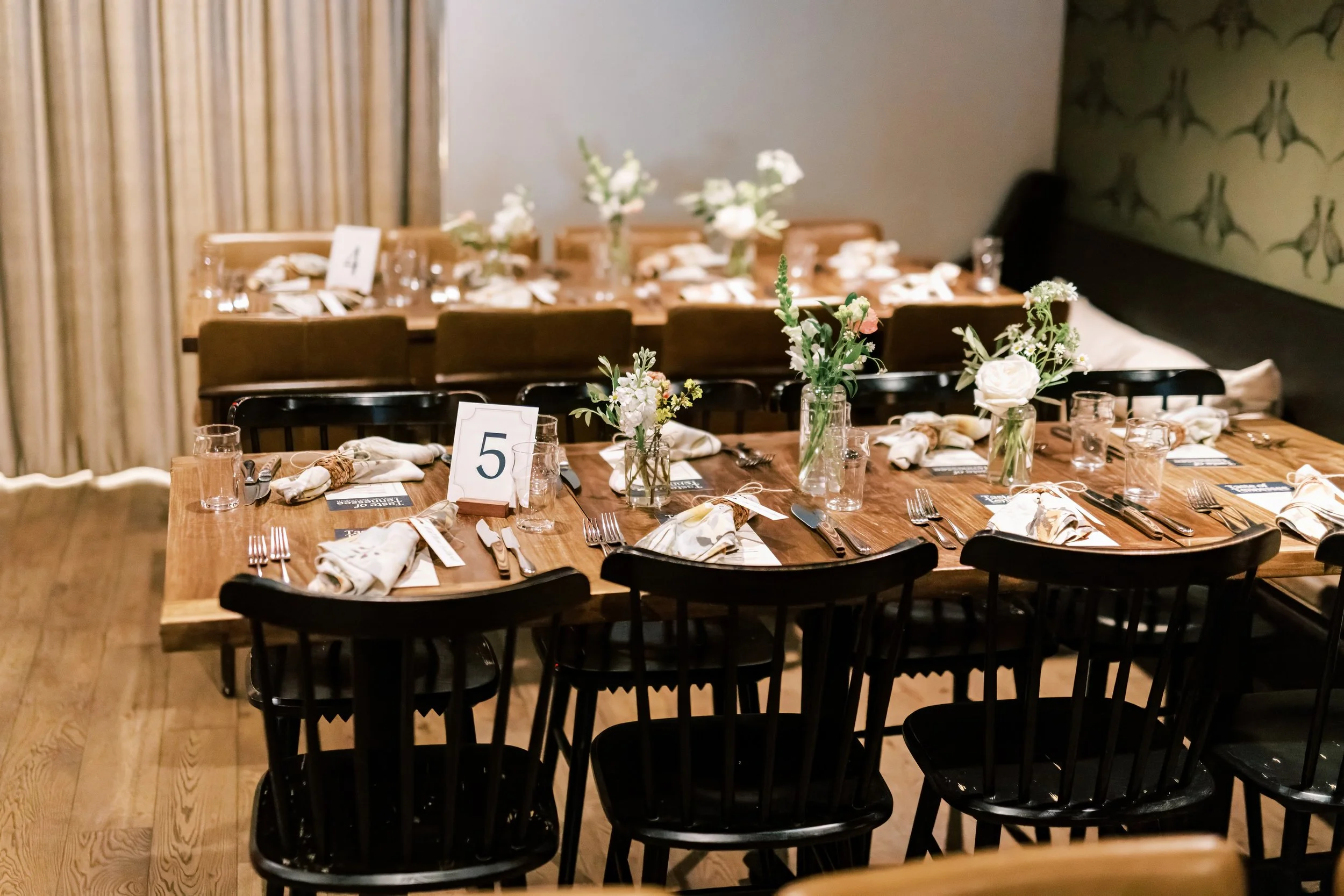 For slightly larger gatherings, we offer two tables ideal for parties of 10–12 guests. A venue fee applies and is credited toward your final bill.Semi‑Private Dining Room